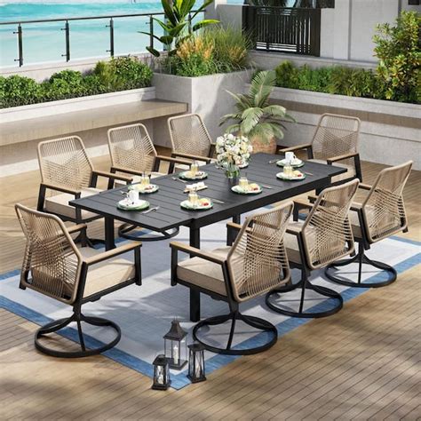 - The set's sleek and modern design is sure to add a touch of sophistication to any outdoor space.